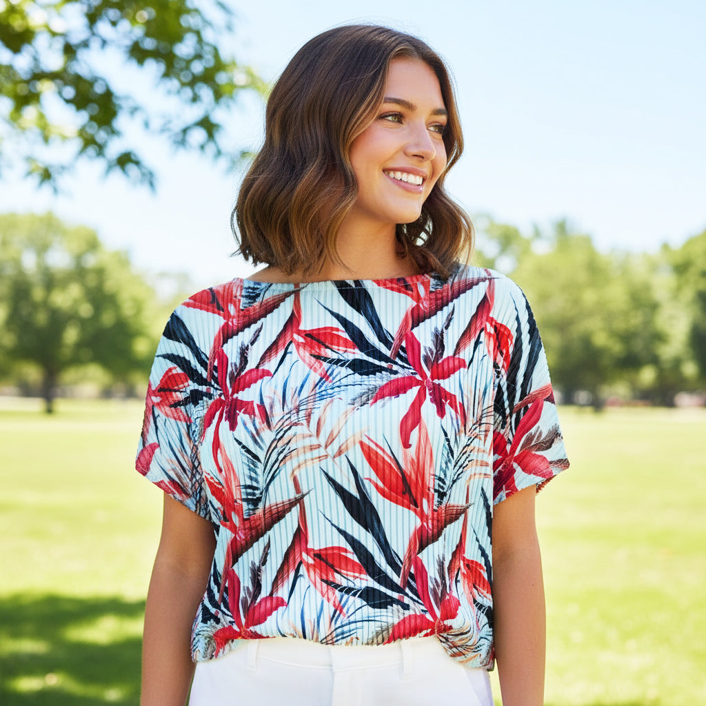 • WOMEN'S SLEEVELESS PLEATED TOP: Island Oasis
